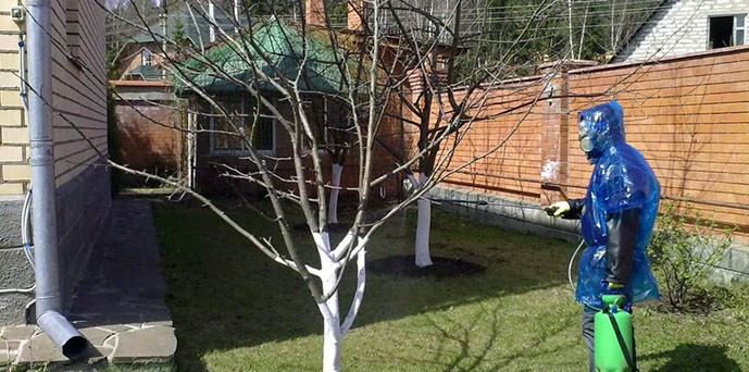— Уничтожение спор грибков, бактерий и вредителей, зимующих под корой и в трещинах.